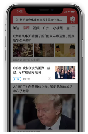 资讯流中穿插展现的原生广告形式,广告即是内容,契合资讯深度阅读体验的广告形式支持CPM、CPT、GD、CPC等多种售卖方式。